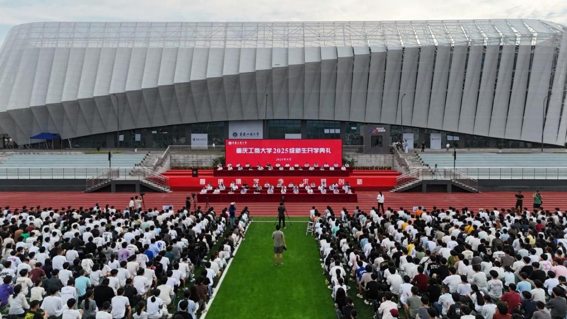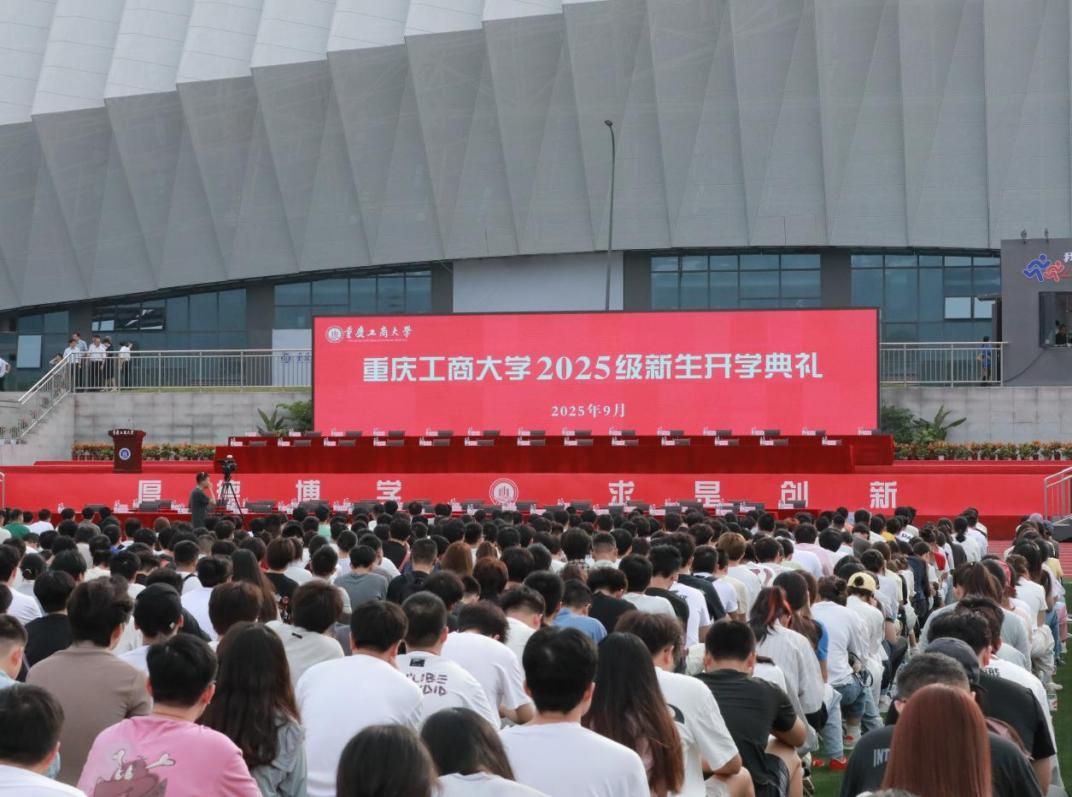 开学典礼在学校官方抖音号和视频号同步直播,南岸校区、兰花湖片区组织2025级新生在教室集中收看。