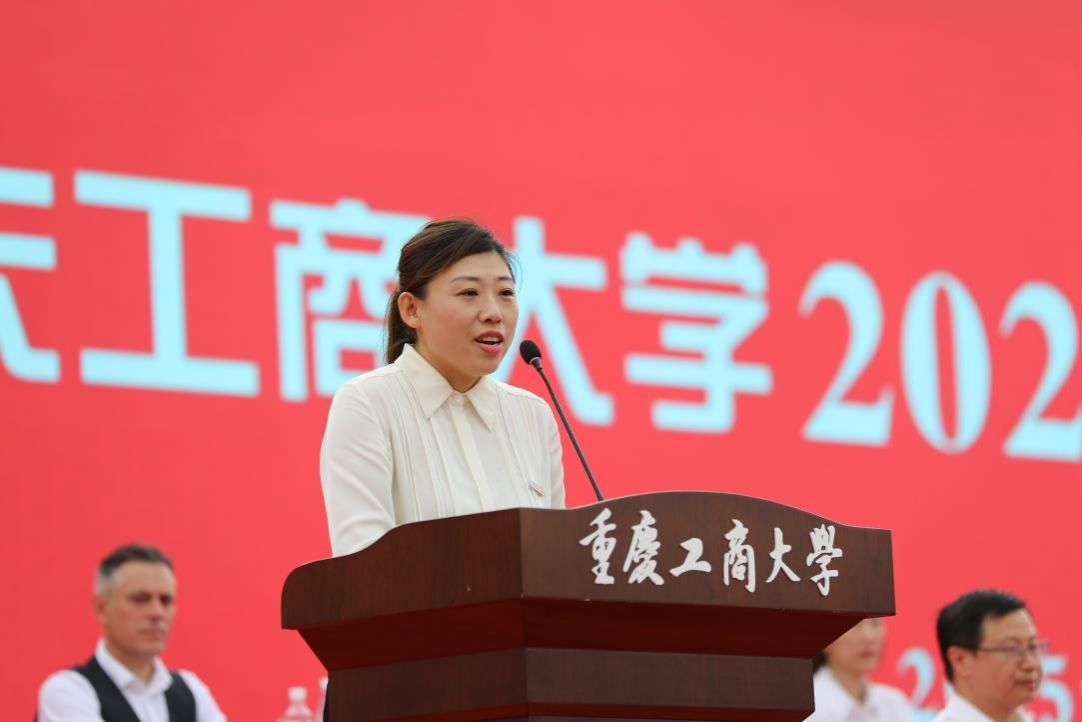 一是以家国情怀锚定人生方向。温涛表示,在重工商大,家国情怀体现在对“经邦济民”的务实追求中。他呼吁同学们将个人理想融入国家战略,在课堂上求真知,在成长中勇担当,把专业所学应用于发展所需,用每一份微小却坚定的努力,在科技进步、民生改善、社会发展中,留下独属于自身这代人的青春印记。二是以创新精神激发成长动能。温涛谈到,学校不断强化“商工融合”复合型人才培养的目标动能,希望同学们主动拥抱AI等智能技术新机遇,在学习中锤炼创新思维、批判性思考与解决复杂问题的能力,成长为适应时代需求的创新型、复合型人才,为迈向更广阔、更智能的未来打下坚实的基础。三是以综合素养奠定人生根基。温涛认为,大学不仅是知识的深造地,更是人格的涵养地。面对学习方式、生活环境、人际关系等多方面的全新转变,他建议同学们学会自我规划、自主管理与自主学习,不断提升适应终身发展和社会需求的核心能力。