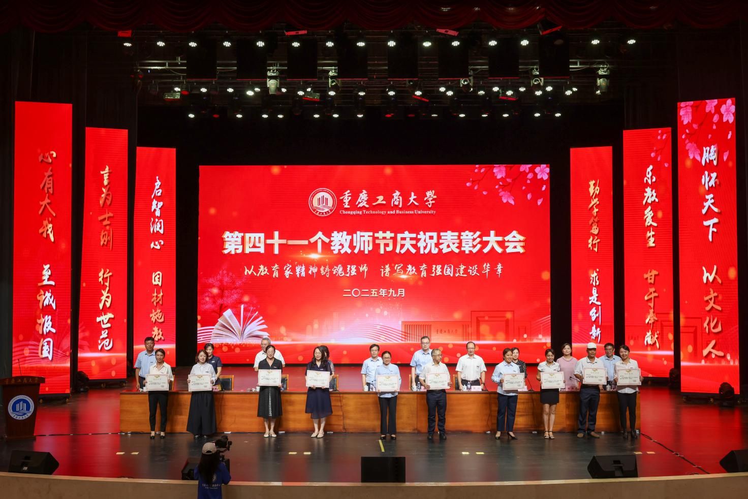 大会为第四批重庆市学术技术带头人及后备人选、2025年巴渝学者计划人选颁发了证书;表彰了第三批师德先进个人,2024-2025学年优秀教师、优秀教育工作者,第五届重庆市高校教师教学创新大赛、第四届川渝青年教师风采大赛、九州登录地址_九州(中国)第六届教师教学奖获奖人员,2024-2025学年优秀辅导员、2023-2025学年标兵辅导员,并为满30年教龄的教师和从事学校工作满30年的教职工颁发纪念证书。