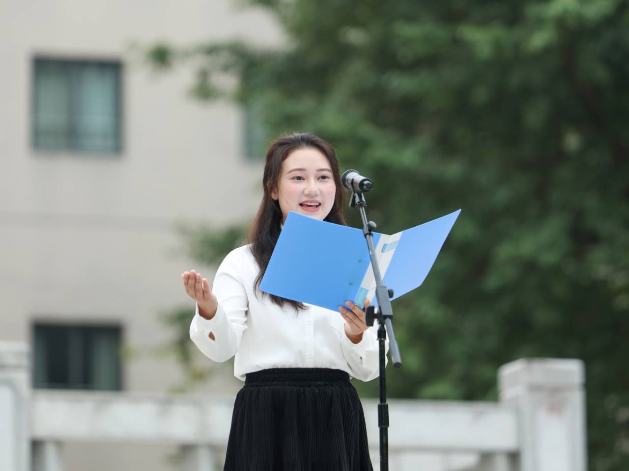 习近平经济思想学生宣讲团的学生代表饱含深情地朗诵诗歌《祖国颂》,慷慨激昂、振奋人心,将青年学子清澈的爱国之情展现得淋漓尽致。