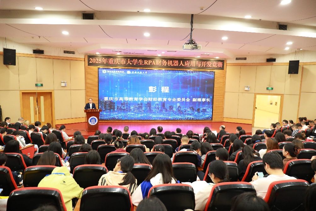杨柏代表学校对与会领导、嘉宾和全体参赛师生表示欢迎。他系统介绍了我校近年来坚定不移推进“新商科+新工科”深度融合的战略布局。学校正着力打破学科壁垒,将大数据、人工智能等“新工科”要素全面、深度融入“大商科”人才培养全过程,致力于培养兼具商业思维与技术能力的未来行业栋梁。他强调,承办此次RPA竞赛,正是我校“以赛促教、以赛促学、以赛促创”育人理念的生动实践,是检验我校“商工融合”人才培养成效的重要平台,更是我校服务重庆市数字经济发展战略的责任担当。