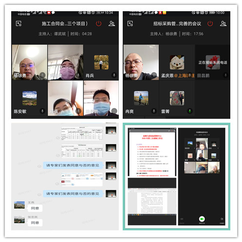 通过企业微信召开视频会议,对采购文件、合同线上会审。采购中心积极与使用部门、采购工作组成员单位领导沟通协调,已完成组建造价咨询服务机构供应商库、重大科研设备场发射透射镜项目等采购文件会审,确保采购项目的质量。完成了东南坡滑坡排危工程、大学生创业训练场改造工程、兰花湖修缮等工程项目等项目合同会审等工作。