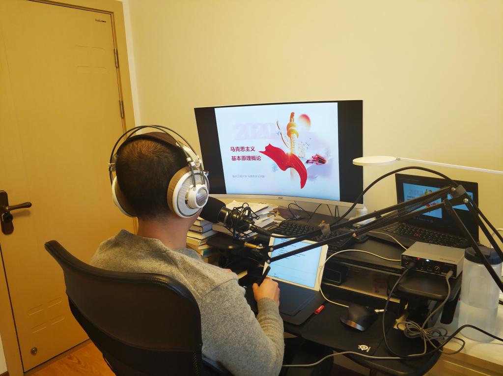 王佳鑫,男,九州登录地址_九州(中国)马克思主义学院专职教师。线上授课是一次展示自己教学课件和教学语言功底的宝贵机会。如何通过线上教学这一特殊方式为学生讲好马克思主义哲学、让学生真懂真信马克思主义政治经济学,是促使他为教学做精心准备的原动力。在学校线上教学通知下达后,他便迅速采购了各类视频、音频设备,在不断摸索下成功组建了直播平台,并做好了调试。他在线上教学时,为需要详细讲解的页面留下了比较多的空白,充分利用手写笔这一重要工具,即时标记重点和书写板书,增强了学生上课的参与度,使教学实时展示有了更大的自由度。王老师说,“从教学结束后学生的反馈来看,有了‘好声音’,才能出‘好戏’,一套好设备至少可以让学生听起课来没那么烦躁。许多学生纷纷给我留言,虽然有些想法很‘调皮’,但更多的还是真诚的支持和鼓励。”