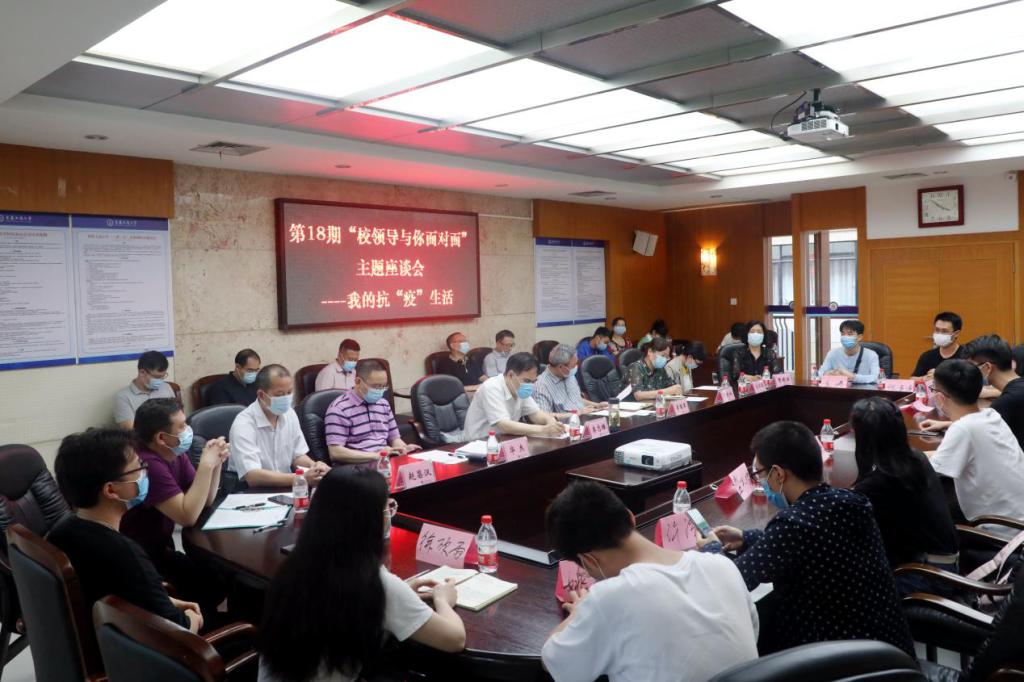 6月12日下午,我校在厚德楼3019会议室举办了以“我的抗‘疫’故事”为主题的第18期“校领导与你面对面”主题座谈会。校党委书记李志雄,副校长李国军,党委宣传部、学生处、研究生院、教务处、后勤处、通识学院等相关职能部门负责人,教师代表,部分学生代表参加。会议由李国军主持。