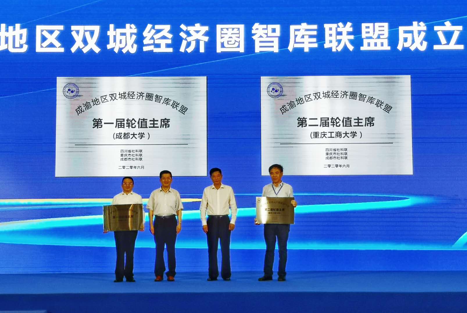 在论坛开幕式上,由我校与四川大学、电子科技大学、西南财经大学、重庆大学、西南大学等单位共同发起的成渝地区双城经济圈智库联盟正式授牌成立。我校当选该联盟第二轮轮值主席,李书记在开幕式上代表学校接牌。据悉,该联盟是由川渝两地高校、党校、社科院中相关从事成渝地区双城经济圈研究的智库机构以及其他相关机构等自愿组成的非法人学术共同体和协同创新平台。我校作为该联盟的发起单位之一和轮值主席,将为成渝地区“唱好‘双城记’,建好‘经济圈’作出积极贡献。