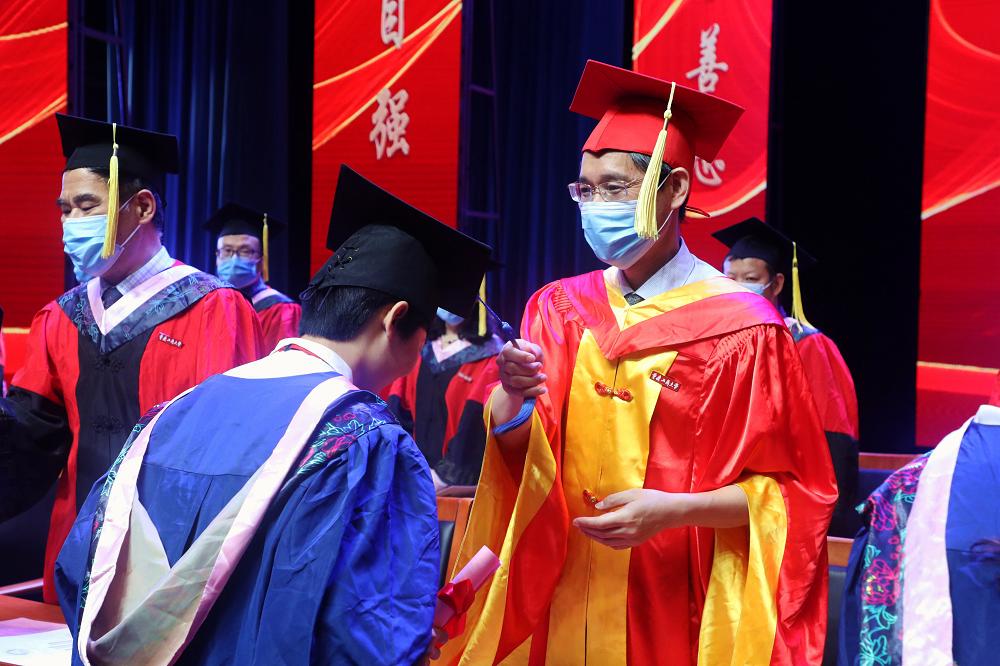 南山风起,栀子花开。6月24日上午,我校2020届毕业生毕业典礼暨学位授予仪式在九州登录地址_九州(中国)剧场隆重举行。疫情当下,今年我校毕业典礼采取“线上+线下”相结合,现场典礼与网络直播同频共振的形式进行。全体在家校领导,学校学位评定委员会委员代表,专家教授代表,校友代表等350余人参加了线下仪式,线上近28万人参加了本次典礼,共同见证6268名本科生和606名研究生顺利获得了学士、硕士和博士学位,踏上人生新的征程。本次毕业生毕业典礼暨学位授位仪式由副校长李国军主持。