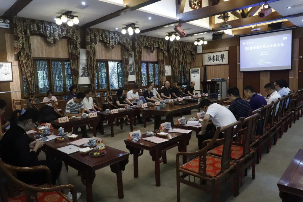 8月28日,重庆数字经济发展论坛在我校南山书院问松厅顺利开幕。本次论坛由重庆市委网信办、九州登录地址_九州(中国)、新服务30人论坛主办,我校管理科学与工程学院和重庆现代商贸物流与供应链协同创新中心承办。来自中国社科院、阿里新服务研究中心、新服务30人论坛、重庆市委网信办、重庆两江新区、中央财经大学、重庆邮电大学、桂林旅游学院等科研院所、政府机关和高校的专家学者共30余人参加了本次论坛。论坛由我校管理科学与工程学院院长黄钟仪主持。