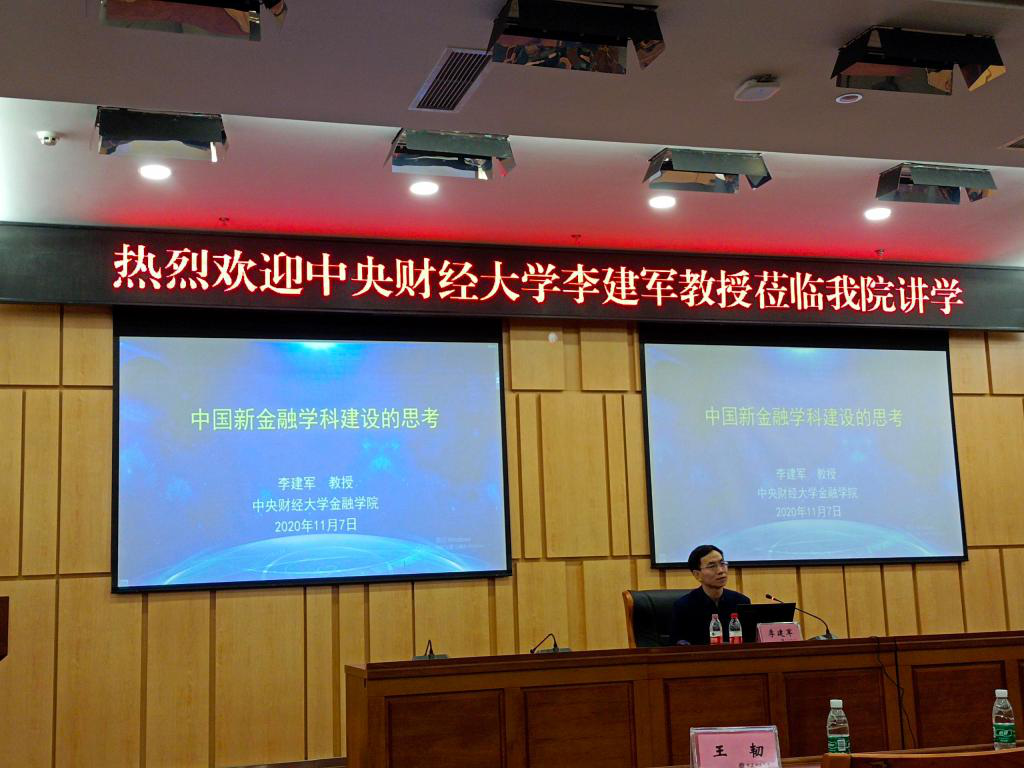 11月7日下午,国家本科教学指导委员会金融学类专业委员会秘书长、中央财经大学金融学院院长李建军教授到我校讲学。我校教务处处长骆东奇、金融学院全体班子成员、系主任、部分教师代表和学生代表参加了此次讲座。讲座由金融学院院长王兰主持。