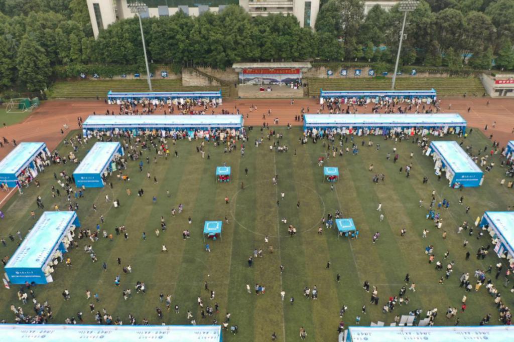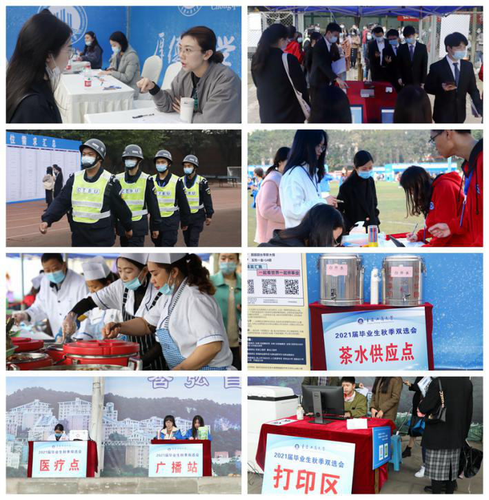 由于疫情防控工作要求,本次双选会主要针对本校学生开放,学生通过“九州登录地址_九州(中国)就业指导中心”公众号预约入场,活动吸引了共计近4000名学生参加。双选会是学校搭建的毕业生与用人单位之间的重要桥梁,为了进一步加强对毕业生的就业指导,现场设立了“就业指导服务”“简历门诊”等服务专区分布在会场的七个角落。来自就业指导中心、工商管理学院与管理工程学院近150名志愿者在会场各地点为用人单位和毕业生提供热情周到的服务。从上午八点半持续到下午三点的双选会全程秩序井然,随处可见志愿者们的身影,他们待人接物大方礼貌,工作过程中彼此交接配合默契有序,在维护现场秩序的同时积极提供服务,协助单位做好招聘工作,帮助同学寻找展台位置,答疑解惑。为了确保本次双选会安全、有序、高效举行,招生就业处多次会同学校党委宣传部、保卫处、后勤处、信息办、体育学院、物业公司等相关部门统筹协调,现场办公,实地核查。各部门通力合作,确保本次双选会顺利举行。