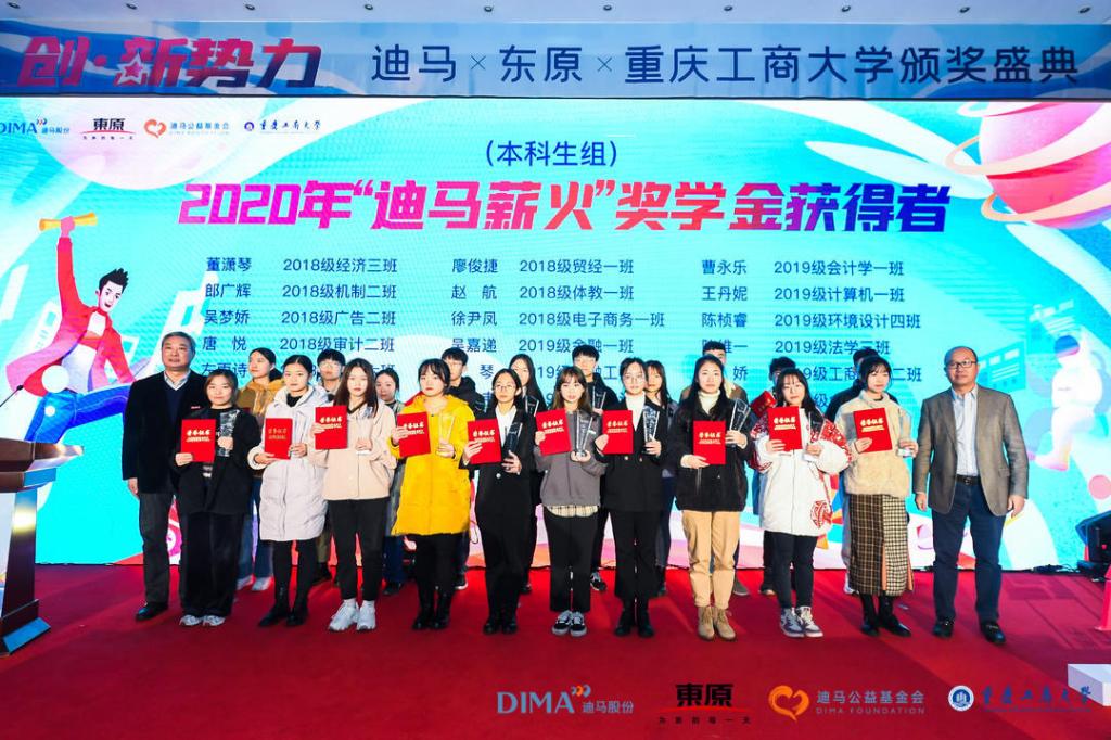 活动第三阶段为“迪马薪火”奖学金颁奖仪式。30名家庭贫困但个人综合能力突出的本科生和研究生获得“迪马薪火”奖学金。获奖学生代表马淑滢表示,是来自于学校和社会的关爱和支持让她不断成长,获得“迪马薪火”奖学金对她而言是一个新的开始,在未来的人生中,她也将继续发扬薪火精神,用爱去关怀他人、奉献社会。
