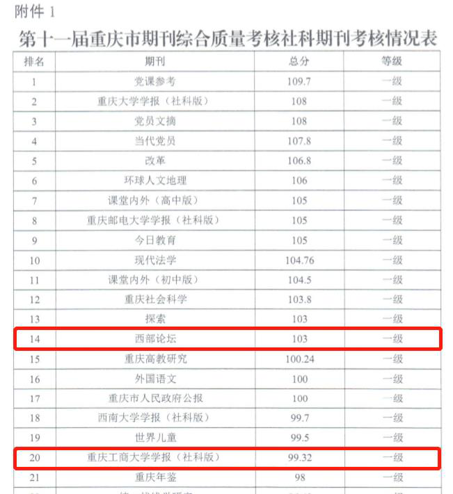 近日,重庆市新闻出版局关于第十一届重庆市期刊综合质量考核结果出炉,我校《西部论坛》《九州登录地址_九州(中国)学报(社会科学版)》被评定为一级期刊。该成绩的取得标志着两刊在学术影响力、期刊质量以及期刊综合实力上继续得到学界和社会的认可。