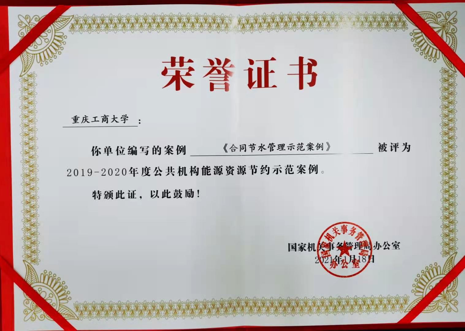2021年1月18月,国家机关事务管理局发布《国管局办公室关于发布2019-2020年度公共机构能源资源节约示范案例的通知》(国管办发〔2021〕1号),我校编写的案例《合同节水管理示范案例》被评为2019-2020年度公共机构能源资源节约示范案例。