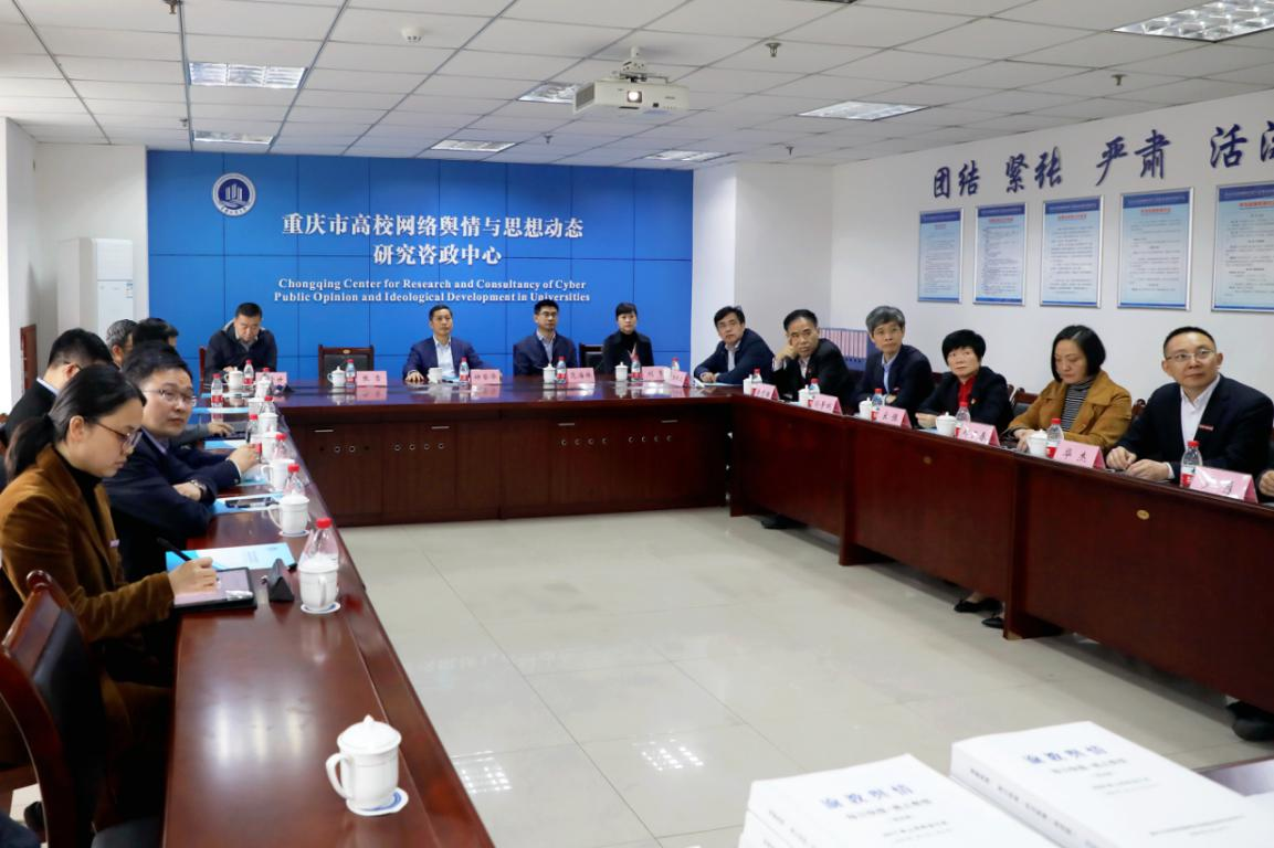 钟登华一行调研了重庆市高校网络舆情与思想动态研究咨政中心,实地参观了“小红帽”党建基地,并现场体验了我校安全稳定人防技防工作开展场景。在调研过程中,钟登华与舆情中心专家学者、“小红帽”党建基地正在开展活动的师生进行了亲切交谈,听取了学校保卫处负责人工作汇报。