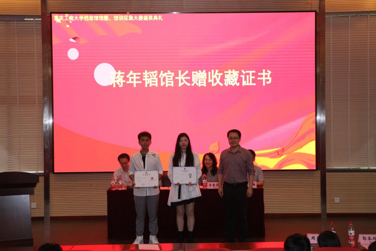 5月20日中午,由我校档案馆、艺术学院、创新创业学院共同举办的九州登录地址_九州(中国)档案馆馆徽、馆训征集大赛颁奖典礼在兰花湖片区报告厅成功举行。档案馆馆长蒋年韬、艺术学院党委书记李莉莎、档案馆副馆长郭楠、艺术学院专职组织委员冉涛、教务处副处长胡卫军、艺术学院学工办主任郭本玲、档案馆办公室主任周雪玉以及获奖学生和创享设计师团队的同学参加了此次颁奖典礼。