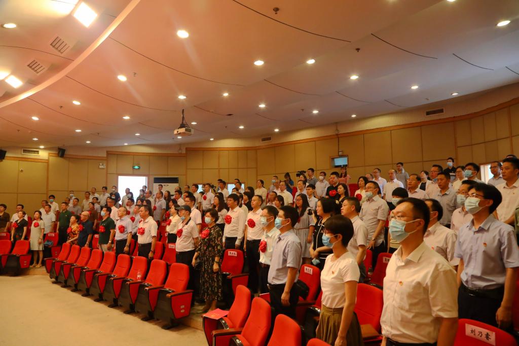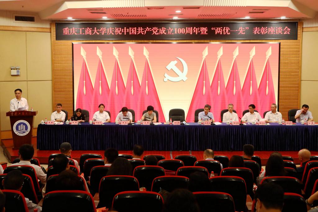 为庆祝中国共产党成立100周年,深入学习贯彻习近平总书记在庆祝中国共产党成立100周年大会上的重要讲话精神,回顾党的光辉历程,弘扬党的优良传统,推进学校党的建设和事业发展, 7月5日上午,我校在博智楼7200报告厅召开庆祝中国共产党成立100周年暨“两优一先”表彰座谈会。全体校领导、党委委员、全校中层正职干部、党委职能部门中层副职干部、受表彰的先进集体和优秀个人代表、30年以上党龄党员代表、师生党员代表参加座谈会。党委副书记、校长孙芳城主持座谈会。