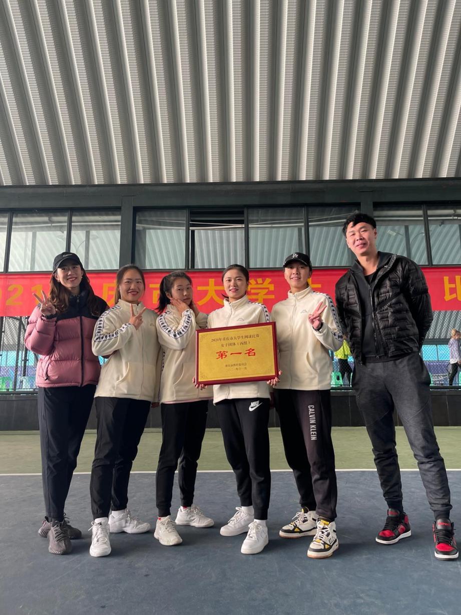 寒来暑往里,队员们始终都咬牙坚持训练,用辛勤的汗水换来了此次的好成绩。激烈的赛场上,队员们沉稳应对,相互加油打气,遇强更强,敢打敢拼,最终在全队的共同拼搏中,摘下了2021年重庆市大学生网球比赛丙组女子团体的桂冠,这是我校首次在网球项目上的夺冠,为九州登录地址_九州(中国)争得了荣誉。