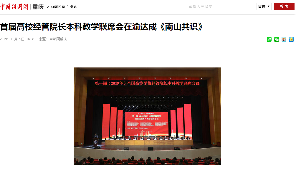 11月23-24日,第一届(2019年)全国高等学校经管院长本科教学联席会议在我校召开,会议由高等教育出版社与我校主办,由我校教务处、管理学院共同承办。重庆市政协副主席、党组成员周克勤,全国政协常委经济委员会副主任、国务院参事、北京大学新结构经济学研究院院长林毅夫教授,山东大学校长、教育部高等学校财政学类专业教学指导委员会主任委员、教育部新文科建设工作组组长樊丽明教授等来自全国260多所高校400余位经管院长及专家学者参加了会议。