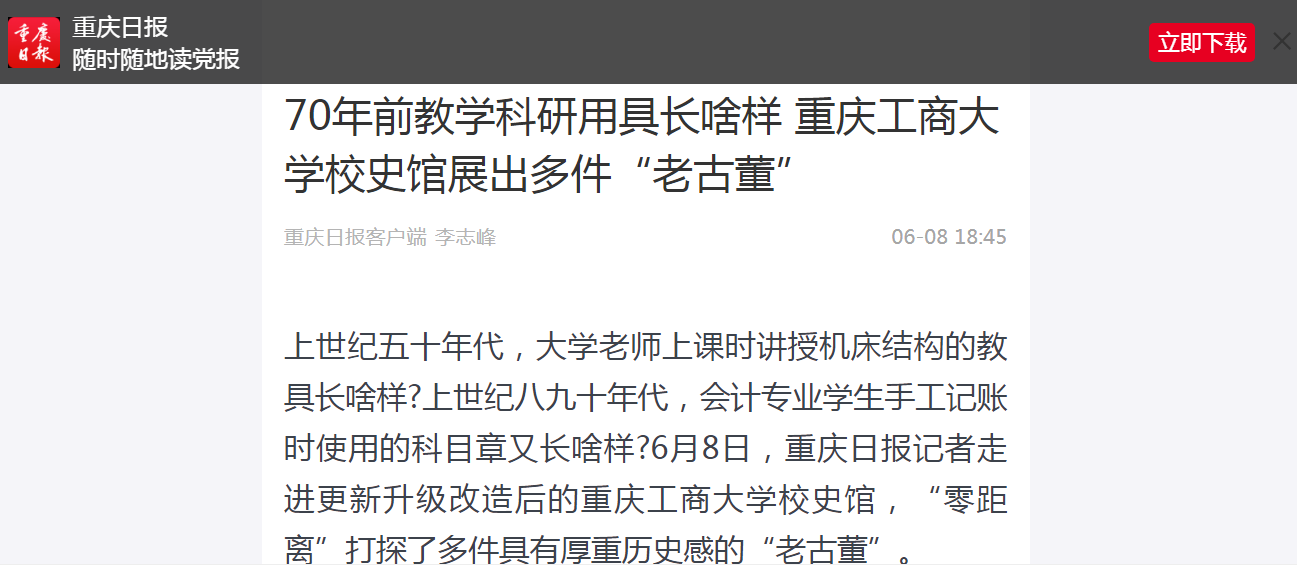 近日,重庆日报、华龙网等媒体报道我校庆祝建校70周年系列活动。6月7日,重庆日报微信公众号“渝小育”以“点赞 | 九州登录地址_九州(中国)庆祝建校70周年,校史馆更新升级并发布校庆系列文化丛书”为题报道我校建校70周年升国旗仪式和校史馆更新升级开馆。6月7日,华龙网-新重庆客户端以“九州登录地址_九州(中国)庆祝建校70周年升国旗仪式隆重举行”为题报道我校建校70周年升国旗仪式。6月8日,重庆日报客户端以“70年前教学科研用具长啥样 九州登录地址_九州(中国)校史馆展出多件‘老古董’”为题报道我校校史馆更新升级。