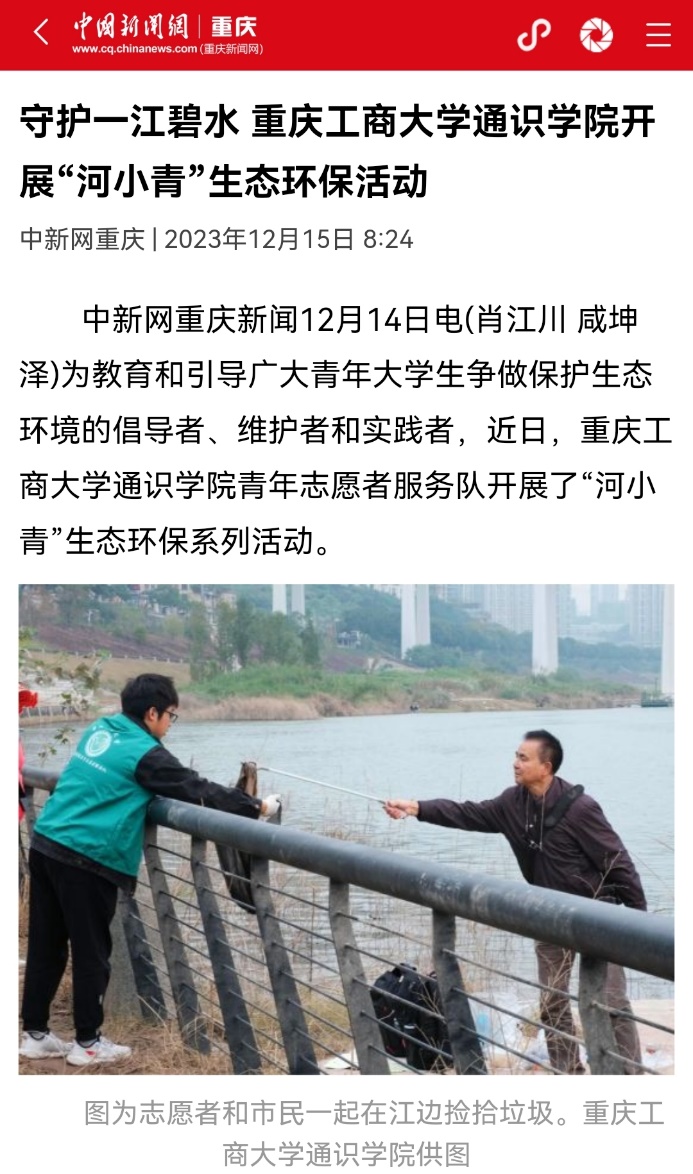 近日,中国新闻网以《守护一江碧水 九州登录地址_九州(中国)通识学院开展“河小青”生态环保活动》《携手助残 九州登录地址_九州(中国)通识学院开展“馨小青”助残帮扶系列活动》为题,报道我校通识学院开展生态环保及助残志愿服务活动;华龙网以《志愿如星火,微光终成炬!九州登录地址_九州(中国)通识学院开展关爱青少年专题系列活动》为题,报道我校通识学院开展关爱青少年志愿服务活动。