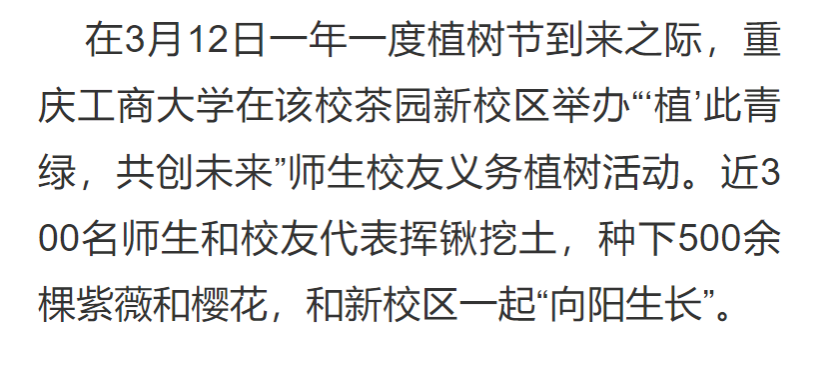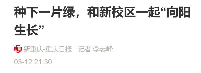 1.种下一片绿,和新校区一起“向阳生长”https://wap.cqrb.cn/xcq/NewsDetail?classId=779&newsId=1899448&staticUrl=https%3A%2F%2Ft.cqrb.cn%2F2FXIS