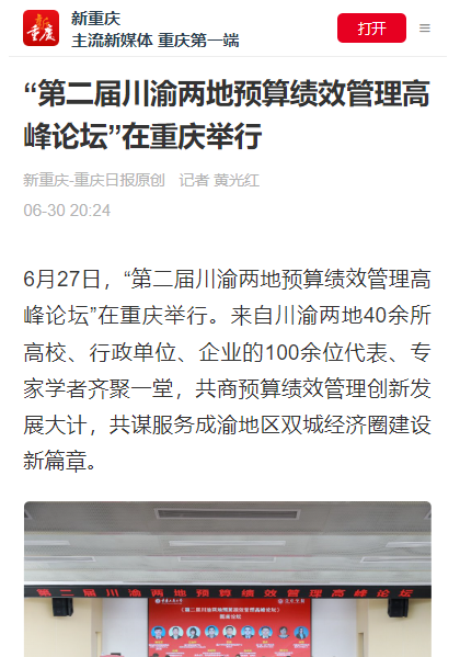 新重庆-重庆日报以《“第二届川渝两地预算绩效管理高峰论坛”在重庆举行》为题报道了本次活动。