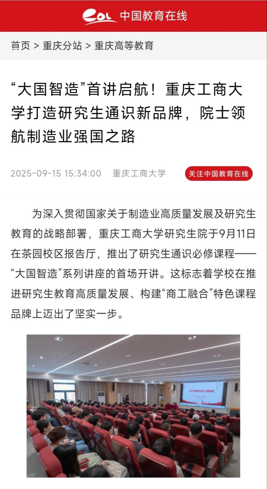 4.重庆教育:院士进高校 为研究生讲“大国智造”通识课