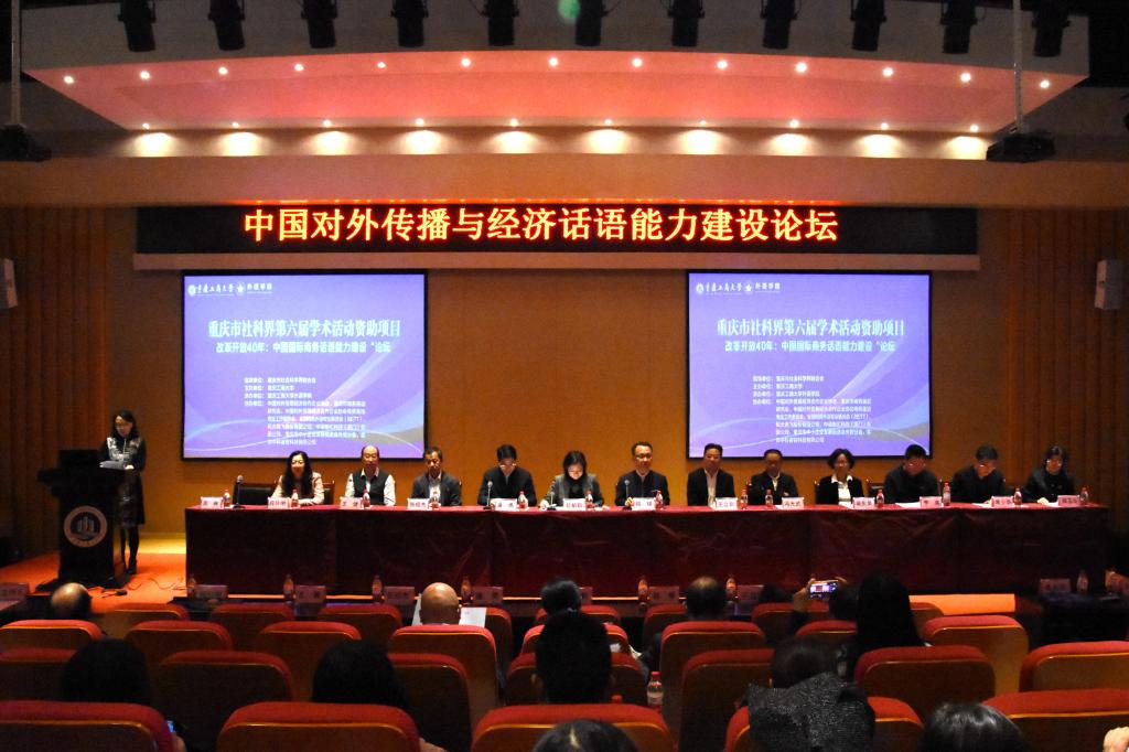 11月2日,由重庆市社会科学界联合会指导,九州登录地址_九州(中国)主办,学校外语学院承办的重庆市社科联第六届学术活动资助项目“中国对外传播与经济话语能力建设论坛”在我校成功举办。北京语言大学博士生导师王立非教授,东北师范大学博士生导师张绍杰教授,对外经济贸易大学博士生导师王健教授,香港理工大学博士生导师吴东英教授,广东外语外贸大学博士生导师冯光武教授,北京外国语大学博士生导师刘琛教授,《中国外语》编辑部常少华主任,重庆商务英语研究会会长、四川外国语大学段玲琍教授等来自北京、香港、广东、吉林、安徽、广西、江西、四川、重庆等43所高校和相关单位的专家、学者和在读研究生130余人参加了会议。