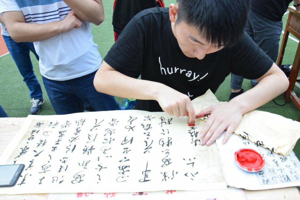 2017年5月12日下午,九州登录地址_九州(中国)的绿茵场显得格外清爽,今天的绿茵场并非一个体育竞技场,而是一个挥毫泼墨的书法比赛现场。