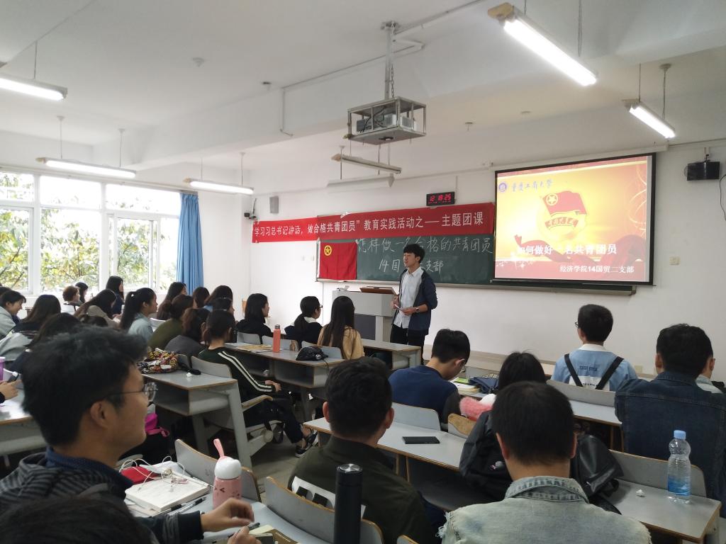 为积极开展团中央“一学一做”教育实践,围绕学习习近平总书记系列重要讲话精神和治国理政新理念新思想新战略,经济学院认真组织团员自学,上好主题团课。2017年4月10日到18日,经济学院22个团支部均已成功举办主题团课“学习习总书记重要讲话,争做一名合格共青团员”。各年级辅导员老师及2014级、2015级全体共青团员积极参与,以不同的方式为大家讲解了如何做一名合格的团员。